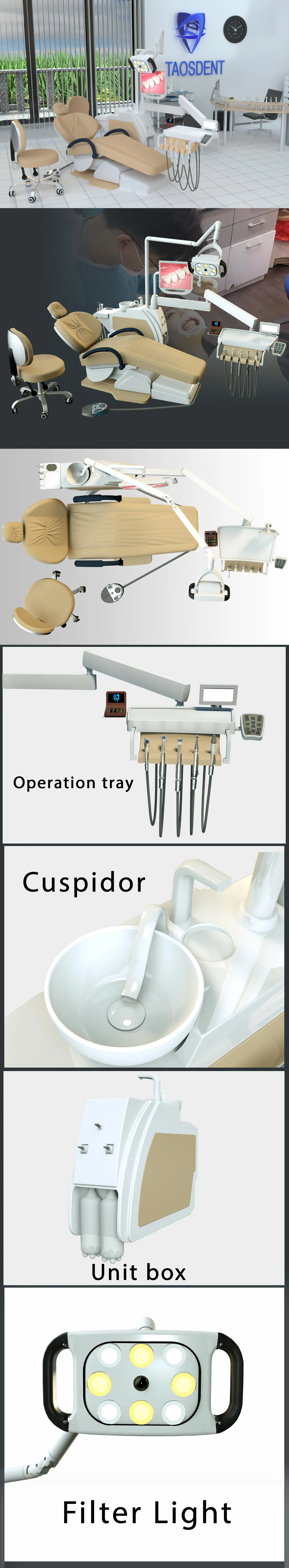 Italian style design, fixed round spittoon, with double water bottle design, can freely switch between purified water or disinfectant water, nine eye light
