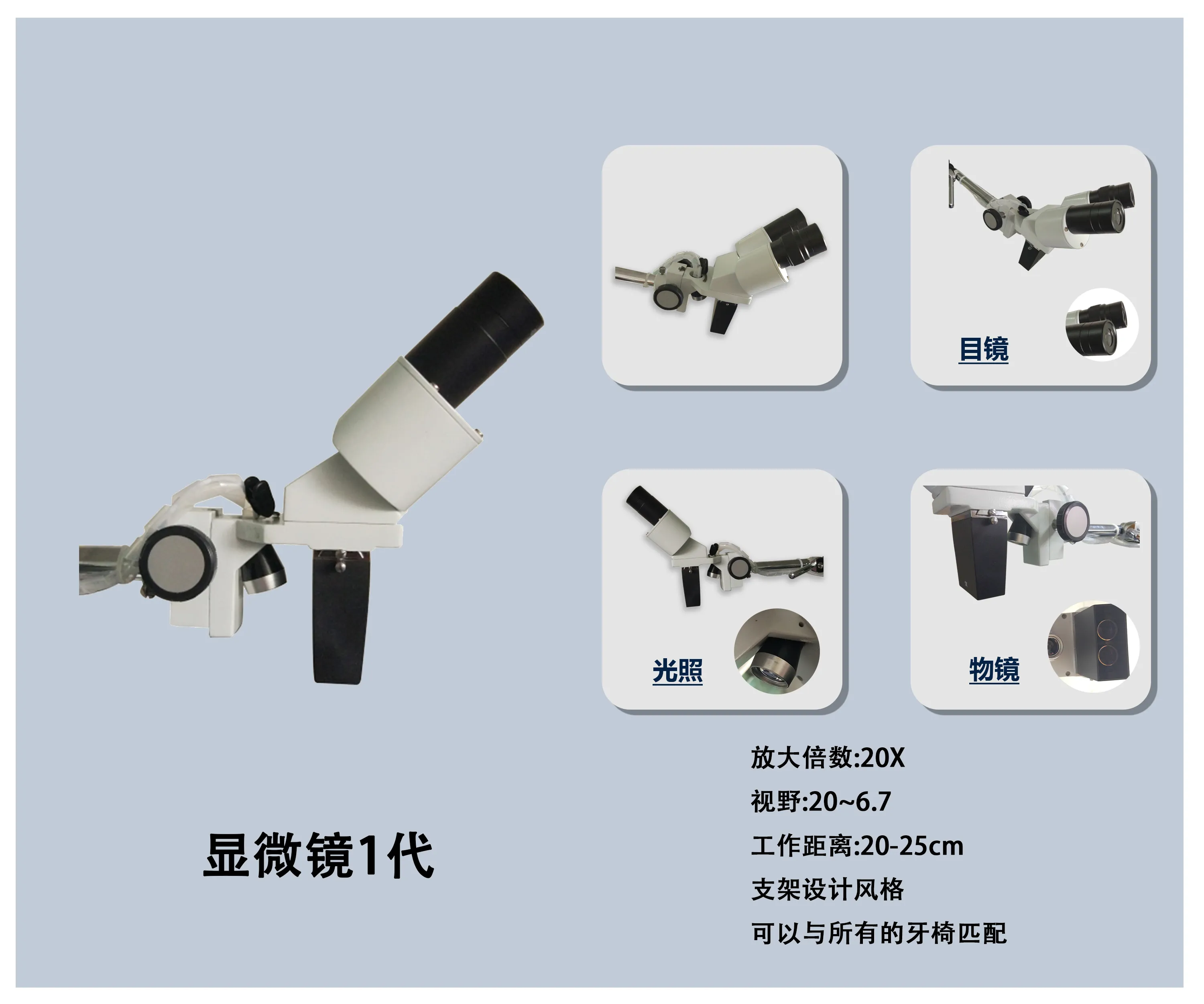 Working distance: 20-25cm bracket design style, can be matched with all dental chairs